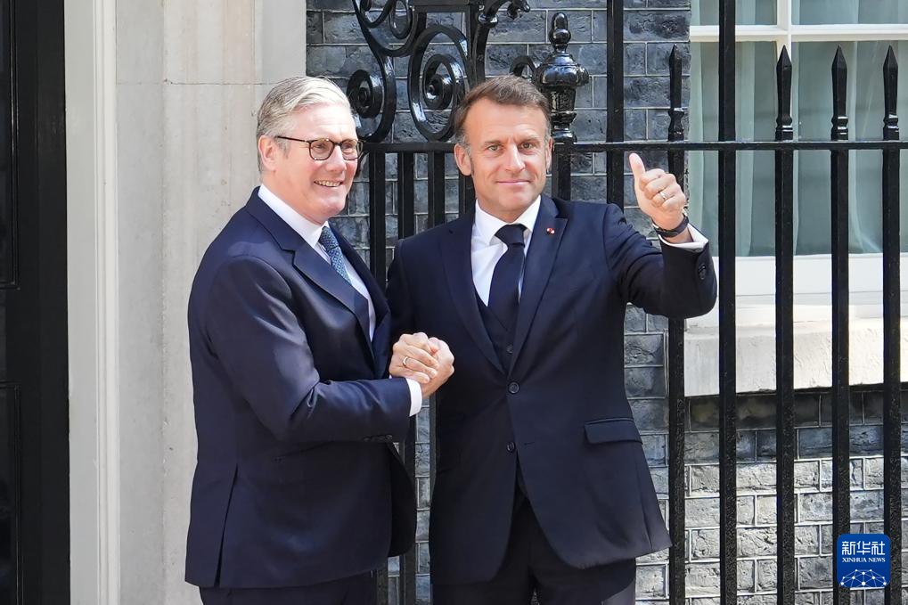 7月10日✿◈,在英国伦敦唐宁街10号首相府前✿◈,英国首相斯塔默(左)与法国总统马克龙握手✿◈。