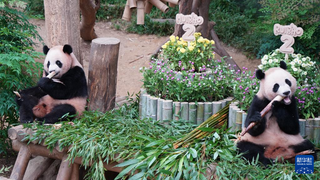 在韩国诞生的双胞胎大熊猫“睿宝”和“辉宝”7日迎来两周岁生日✿◈,韩国爱宝乐园为它们举行庆生活动✿◈。